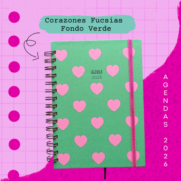 Agenda 2026 - Corazones Fucsias Fondo Verde